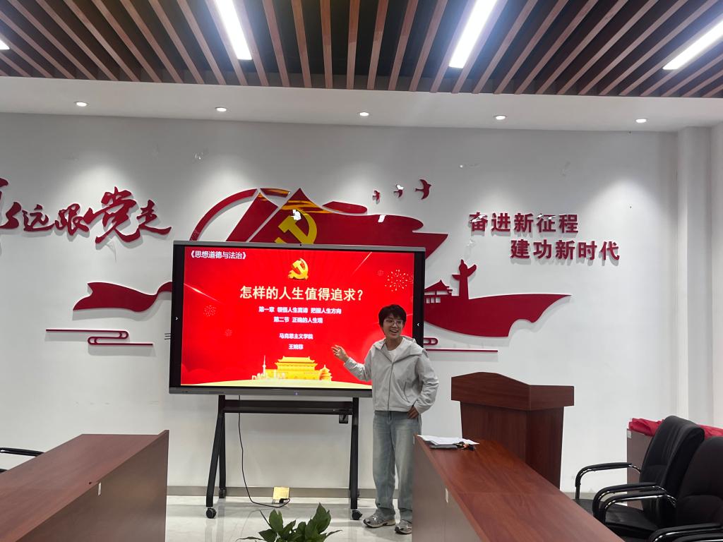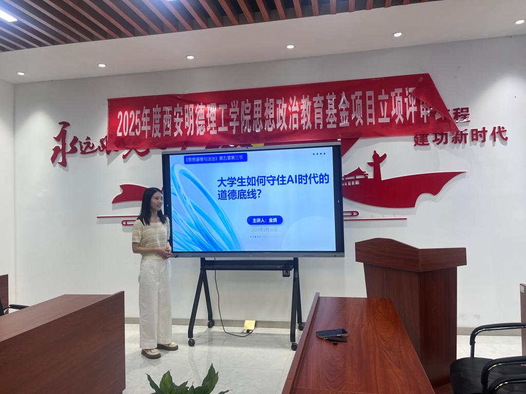 德育教研室金鸽、马乾昱、王婉菲几位老师,各自围绕如何树立高尚的人生目的、如何实现当代青年的人生价值、AI时代的道德要求等不同角度,依次进行了10分钟的教学展示。教研室其余老师到场聆听,并针对几位老师的选题及现场表现,集思广益,针对选题、教学框架等具体问题提出了若干可行性意见。