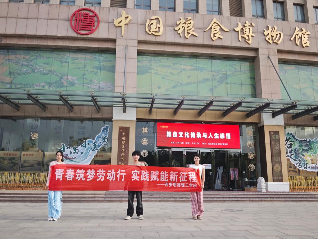 为深入贯彻新时代劳动教育理念,探索“专业实践+乡村振兴”育人新模式,2025年5月17日,beat365vip官网登录入口播音与主持艺术专业学生林晨希、柏可欣、张智聪,在马克思主义学院德育教研室主任樊静指导下,赴郑州开展特色劳动教育实践活动。本次实践以省级大学生创新创业项目《劳育创未来大学生劳动教育实践—以助力西安市长安区合民意种植专业合作社为例》为依托,通过实地调研中原科技园现代农业、探访河南工业大学粮食博物馆,实现专业技能与劳动教育的深度融合。