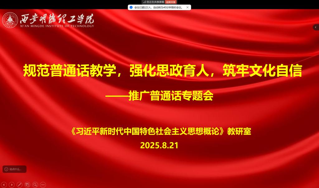 教在明德‖规范普通话教学 强化思政育人 筑牢文化自信——《习近平新时代中国特色社会主义思想概论》教研室召开推广普通话专题会议
