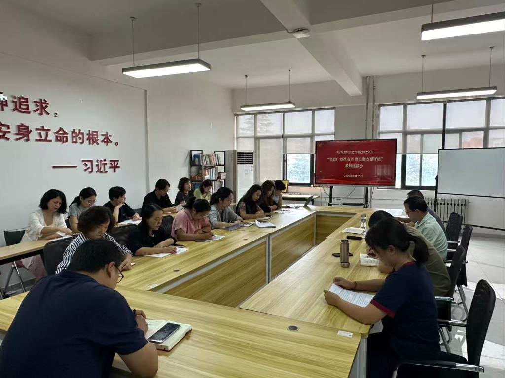 2025年9月15日,马克思主义学院在明志楼南306会议室召开“集思广益谋发展,凝心聚力迎评建”教师座谈会。学院领导班子全体成员与教师代表围绕学院队伍建设、课程建设与科研建设三大核心议题展开深入研讨,共谋发展良策,以实际行动迎接教育教学评估工作。会议由学院主要负责人主持。