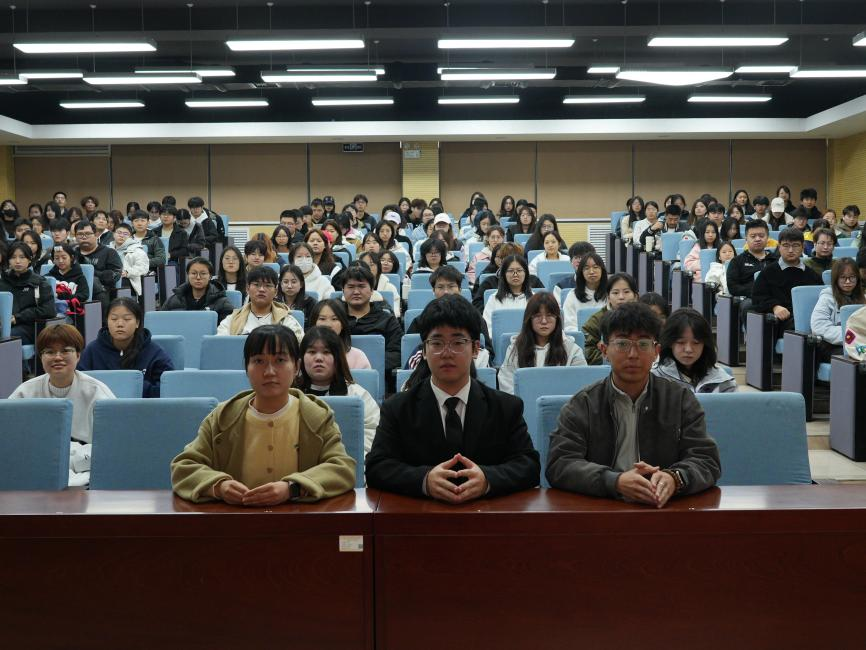 接力宣讲的第二棒,宣讲人刘彦廷以郭永怀先生“把生命献给我国核事业”的事迹为主线,讲述了他毅然归国、投身国防科技事业的坚定选择。通过回顾郭永怀在科研攻关中的卓越贡献及其感人至深的精神品格,生动诠释了“热爱祖国、无私奉献”的崇高境界。从1949年新中国成立的归国热情,到1955年历经六年等待踏上归途;从临行前焚毁全部科研手稿的决绝,到1960年隐姓埋名投身核武器研究;直至1968年12月5日那个令人痛心的空难瞬间——他与警卫员紧紧相拥,用身躯保护珍贵科研资料。这段感人至深的讲述,特别是郭永怀牺牲前写给女儿那封充满父爱却无法兑现承诺的家书,让在场同学无不为之动容。而“郭永怀星”的命名佳话,更让所有人感受到这种精神在历史长河中的永恒光芒。