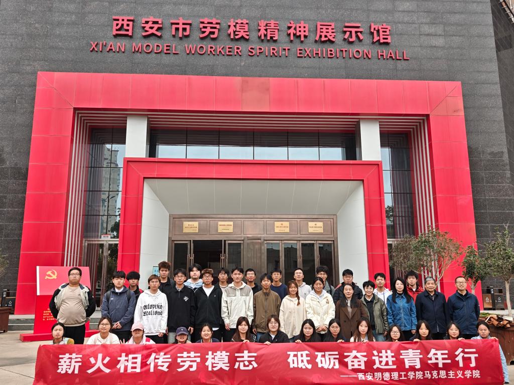 为深入贯彻落实新时代劳动教育要求,厚植劳动情怀,弘扬劳模精神、劳动精神、工匠精神,11月5日下午,马克思主义学院组织学生社团耕耘社、德法同行社成员及学生代表共计30余人,在惠斌、孔润年、樊静、甘芬、王婉菲五位老师的带领下,前往西安劳模精神展示馆,开展“薪火相传劳模志,砥砺奋进青年行”主题实践活动。在展示馆中,师生们通过丰富的实物展陈与感人事迹,深切感悟一代代劳动者的奋斗底色,于故事与实景的交融中汲取“劳动创造幸福”的深厚精神力量。