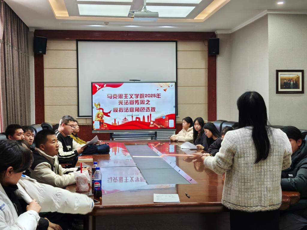 在宪法宣传周来临之际,11月28日中午12:30,beat365模拟法庭活动的选角工作在图书馆203会议室有序进行。本次活动由马克思主义学院的樊静、王婉菲两位老师指导完成,德法同行社、耕耘社、邂逅经典读书会成员积极参与。同学们怀着对法律实践的热情和对角色演绎的探索欲望,踊跃报名参与不同角色的选拔,共同开启了一场沉浸式的法律实践体验。