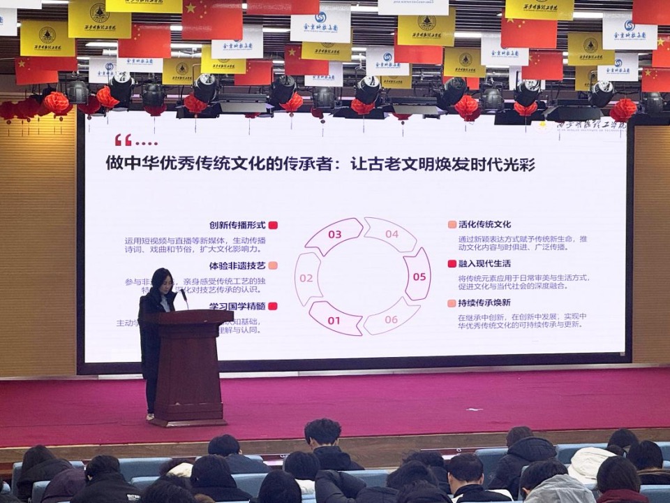 宏莹老师带来了《习近平文化思想学习纲要》的精彩解读。她从习近平文化思想的形成背景、核心要义和重大意义等方面进行了深入分析。宏莹老师指出,习近平文化思想是新时代党领导文化建设实践经验的理论总结,是马克思主义文化理论中国化时代化的最新成果,为新时代宣传思想文化工作提供了强大的思想武器和行动指南。她还结合校园文化建设的实际,鼓励同学们积极践行习近平文化思想,传承和弘扬中华优秀传统文化,增强文化自信,为校园文化建设贡献力量。宏莹老师的分享深入浅出,使同学们对习近平文化思想有了更全面、更深刻的认识。