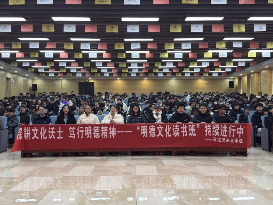为深入学习马克思主义理论,引领青年学子在阅读中感悟思想伟力,持续推动“书香明德”校园文化建设,12月3日,第十七期“明德文化读书班”暨12月读书交流分享活动圆满举行。本次活动特邀马克思主义学院金鸽、王雪、宏莹三位老师,与同学们共聚一堂,回顾红色记忆下的追求真理之路以及字里行间中展现的时代精神与文化底蕴。