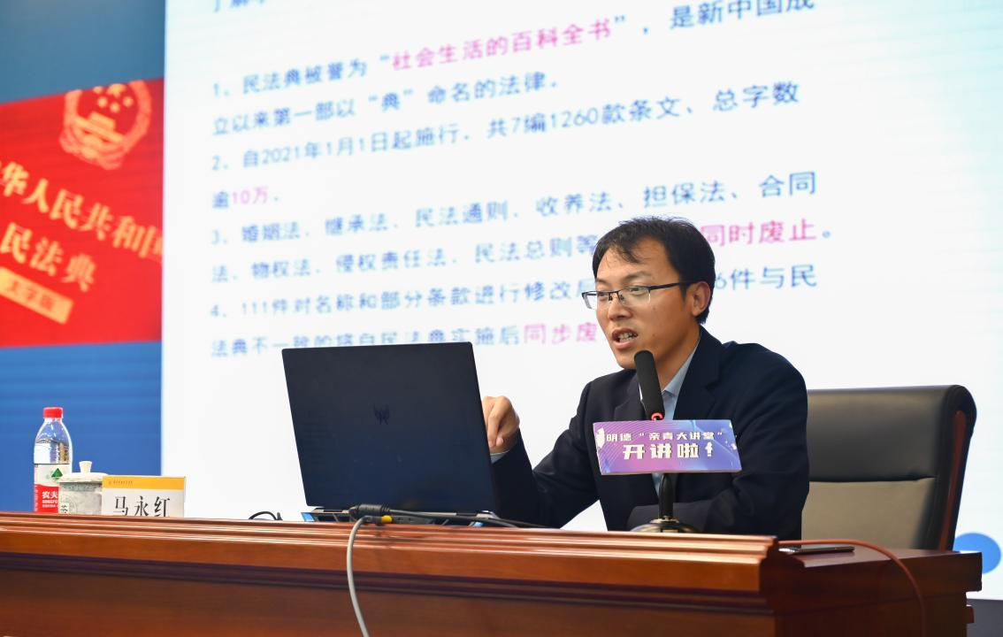 在两个小时的讲座中,马永红律师结合“北大包丽案”“叶挺烈士名誉权案”等案例,和在场师生不断问答互动,勉励大学生们牢固树立法治意识,以学习为本位,过有意义的大学生活,从身边小事做起,为理想努力奋斗。
