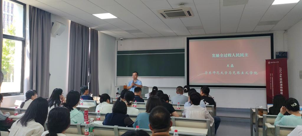 8月23日上午,于华东师范大学普陀校区文史楼107全国高校思想政治理论课教师研修基地(华东师范大学)副主任王磊老师向各位老师示范说课:民意民智直通车——全过程人民民主。下午赴上海中共一大会址纪念馆参观学习。