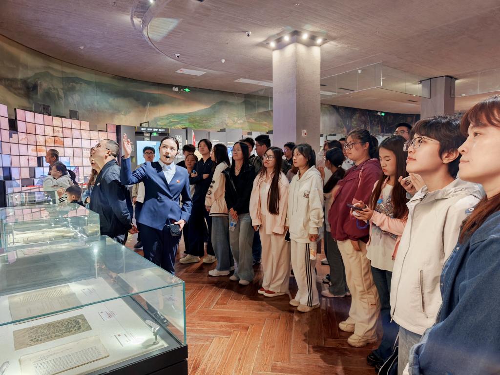 抵达照金镇后,师生们首先来到陕甘边革命根据地照金纪念馆。在这里,德法同行社成员有幸采访到了beat365优秀校友、纪念馆资深讲解员乔金薇。乔金薇结合自己多年的讲解经验与对照金精神的深刻理解,向同学们分享了许多珍贵的历史细节与背后的感人故事,并鼓励学弟学妹们要忠诚于党、热爱母校,把个人小我融入国家大我之中。随后,在讲解员的带领下,师生们认真观看了馆内丰富的历史资料、图片以及文物,仿佛穿越时空,见证了陕甘边革命根据地从艰难创建到逐步发展壮大的全过程。
