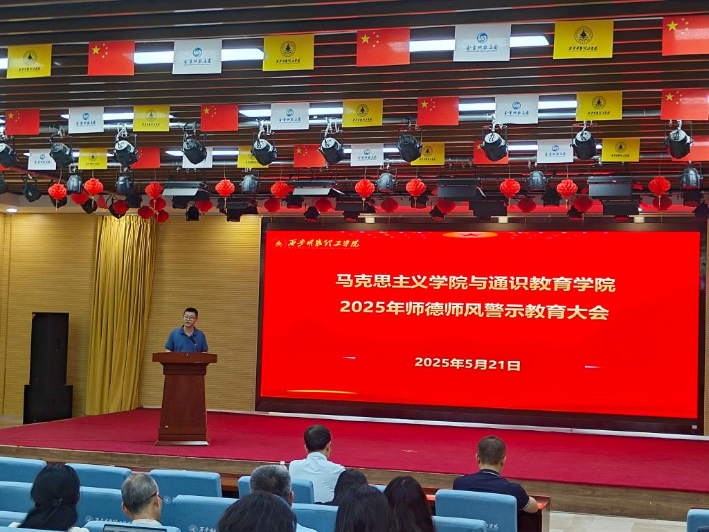 为深入贯彻中央八项规定精神学习教育,以及全国教育大会精神,切实增强教师遵守新时代教师职业行为十项准则的思想自觉和行动自觉,坚守为党育人、为国育才的初心和使命,不断涵养高尚师德,持续推动学习教育家精神,做党和人民满意的“四有”好老师。5月21日14时,马克思主义学院与通识教育学院在建德楼203召开了2025年师德师风警示教育大会。学院领导班子和全体教职工参加会议,会议由学院党委书记王君涛主持。
