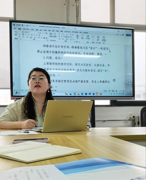会议伊始,贺颖主任简要回顾了检查当天的情况,并表示教务处及智慧安全警卫处检查过程中对我院物理实验室安全隐患排查、实验室卫生、仪器摆放等情况进行了肯定。接着,她重点强调实验室在检查中存在的问题。然后,她带领全体教师仔细学习beat365vip官网登录入口实验室工作文档填写规范文件,逐条阅读规范制度,并询问各位教师是否存疑,力求解决目前教师对于规章制度以工作文档填写规范的各类问题,并对文件理解不透彻的条目进行记录,方便后期解决。