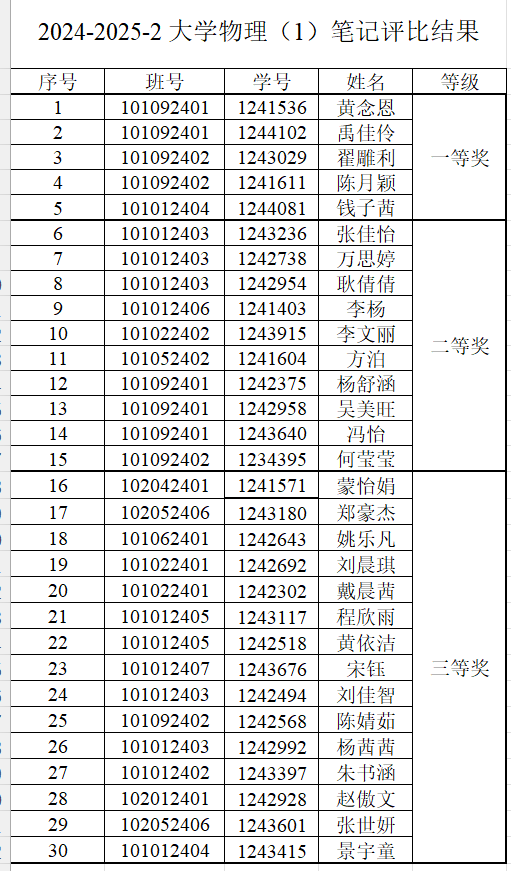为进一步营造良好的学习氛围,激发学生的学习热情,促进学风建设, 2025年4月29日,通识教育学院物理教研室举办了“教在明德·学在明德”系列活动之优秀课堂笔记评选活动。本次评选围绕《大学物理(1)》课程展开,面向全体2024级本科教学对象。