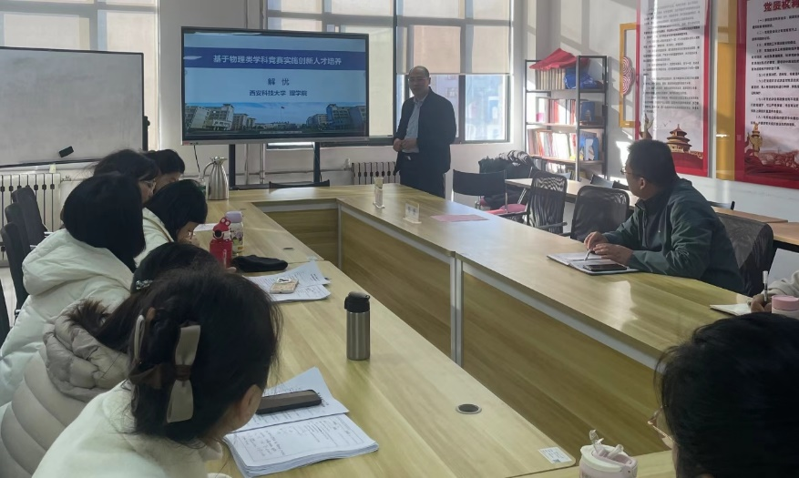 为深入贯彻落实国家创新驱动发展战略,改善beat365人才培养计划体系,提高学科竞赛参与度,beat365vip官网登录入口通识教育学院邀请了西安科技大学的解忧教授于2024年12月29日,开展了以“基于物理类学科竞赛实施创新人才培养”为主题的学术讲座。解忧,男,博士,教授,硕士研究生导师。中国物理学会会员,陕西省物理学会会员,教育部高等学校物理学类专业教学指导委员会西北地区工作委员会委员。研究领域有凝聚态物理和光电信息工程。在国内外核心期刊上发表教学科研论文八十余篇,其中第一作者文章被SCI/EI收录三十余篇,他引三百余次。出版专著、主编和参编教材共五部。主持和参与陕西省自然科学基金、国家自然科学基金以及中国博士后科学基金等十余项。荣获省部级科研奖项等十余项。
