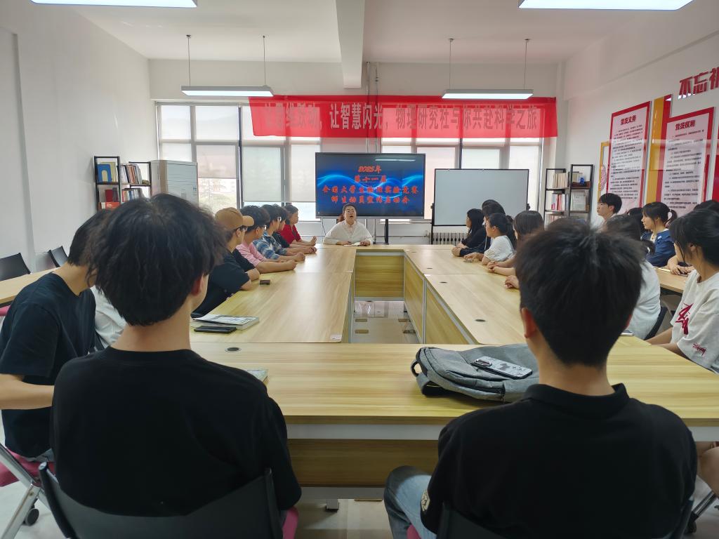2025年4月18日,物理研究社社团在明志楼306召开了别开生面的主题活动。此次活动主题是2025年第十一届全国大学生物理实验竞赛动员大会,并为今年实验竞赛报名做准备。