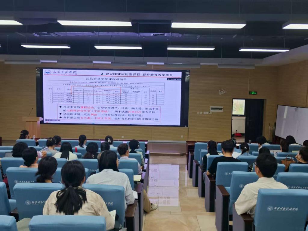 武昌首义学院教务处处长、硕士生导师兼省级一流本科专业与新工科课程负责人张小菊教授,以“OBE理念下课程建设与课堂教学改革”为题作专题报告。在报告中,她不仅深入讲解OBE理念的核心要义,还以武昌首义学院为实践案例,详细阐述如何以学生学习成果为导向,优化课程目标、课程内容与课程评价体系,并针对课程建设与课堂教学改革中的重点难点问题,提出“目标—内容—评价”一体化实施路径,为我院教师开展相关教学实践提供了思路与参考。