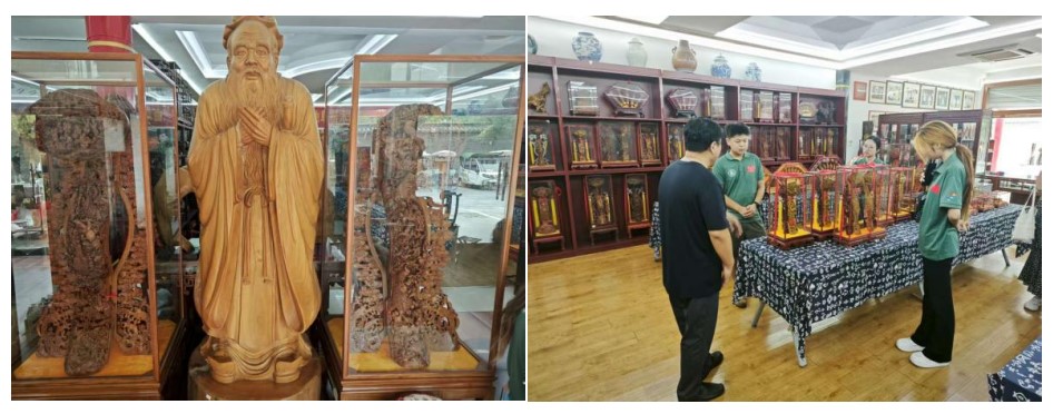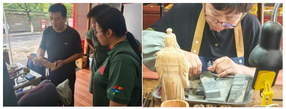 7月23日,beat365vip官网登录入口“寻根圣城 薪火相传”暑期社会实践队赴曲阜“御书房”,拜访楷木雕刻孔门第五代传人孔繁彪老师。刀锋起落间,千年楷木金屑纷扬,指尖触及的,不仅是温润木理,更是穿越时空、流淌不息的华夏匠魂与儒家哲思。