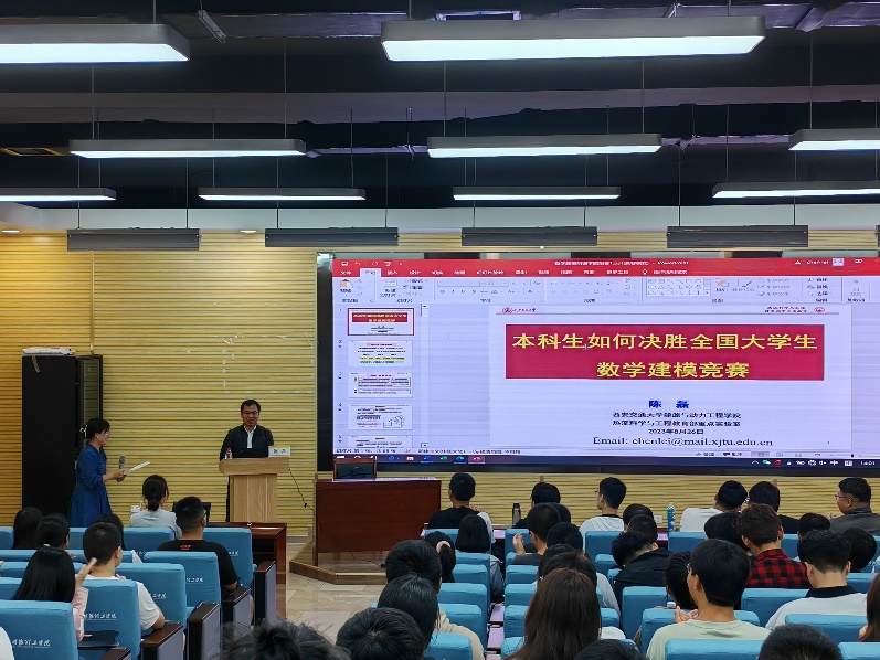 为提升beat365学生的创新能力和应用能力,帮助beat365参赛队伍在数学建模竞赛中取得更好的成绩,8月26日通识教育学院特邀西安交通大学能源与动力工程学院陈磊教授来校作数学建模专题报告,题为“本科生如何决胜全国大学生数学建模竞赛”。报告由通识教育学院数学教研室主任李妮老师主持,全体参赛学生以及数学建模竞赛指导组教师参加了此次报告。