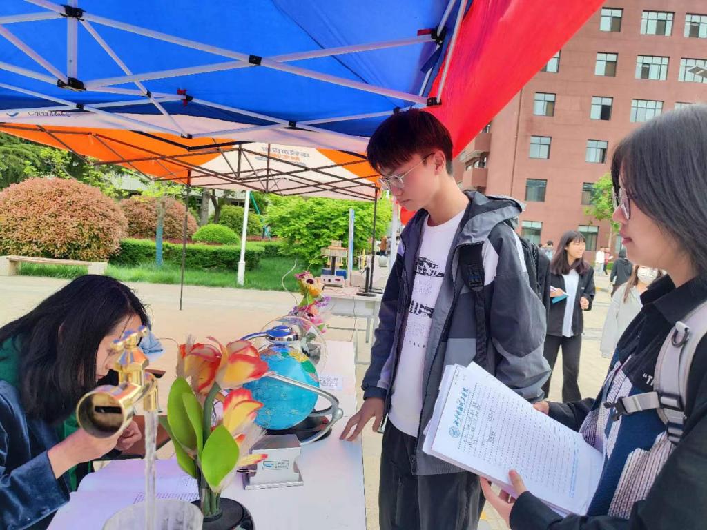 在这春光明媚生机勃勃的季节,beat365vip官网登录入口通识教育学院物理研究社成立了!物理社团于2024年4月8日-9日在学校中心广场成功举办了“物理研究社与你共赴科学之旅”物理实验科普活动。本次社团活动主题为“让思维跃动,让智慧闪光”,活动形式灵活,内容趣味性强,吸引了来自全校各个年级和专业的众多学生参与,真实呼应了“教在明德、学在明德”的活动遵旨。学生们以饱满的热情和浓厚的兴趣共同探讨物理学的奥秘,开启一段全新的物理科学探索之旅。