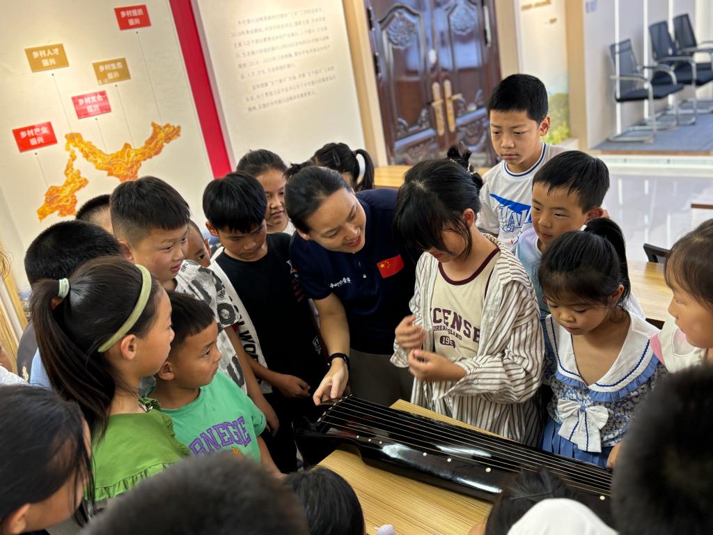 樊老师专业为古筝演奏教学,当她第一次走进乡村的社区课堂,看到孩子们那一双双充满好奇和渴望的眼睛时,她便深知自己肩负的责任重大。这里的孩子们,大多从未接触过古筝这种古老而优雅的乐器,对于中华优秀传统文化中的音乐之美,更是知之甚少。她通过对古筝与古琴两种乐器的对比介绍,让同学们感受中国传统乐器各自独有的魅力。通过演奏不同风格的乐曲,让孩子们沉浸在美妙的音乐中。同时让孩子们在琴声的伴奏下演唱,悠扬的琴声与快乐的童声在乡村中回荡。