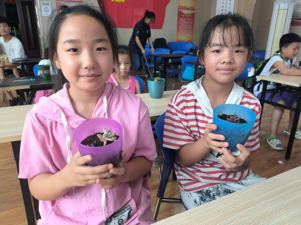 垃圾分类讲座进行时,“水之心”实践队杨瑞欣队员通过生动的图片与具体的实际案例编撰而成的小故事,深入浅出的讲解了垃圾分类的标准和方法,并在现场设置了垃圾分类小游戏,让小朋友们在轻松愉快的氛围中加深对垃圾分类的理解与记忆。讲座结束,志愿者带领小朋友们亲手制作了一个个小盆栽。点线成面,积水成渊,让大家更深刻的认识到每个人都是环境保护的参与者、贡献者。