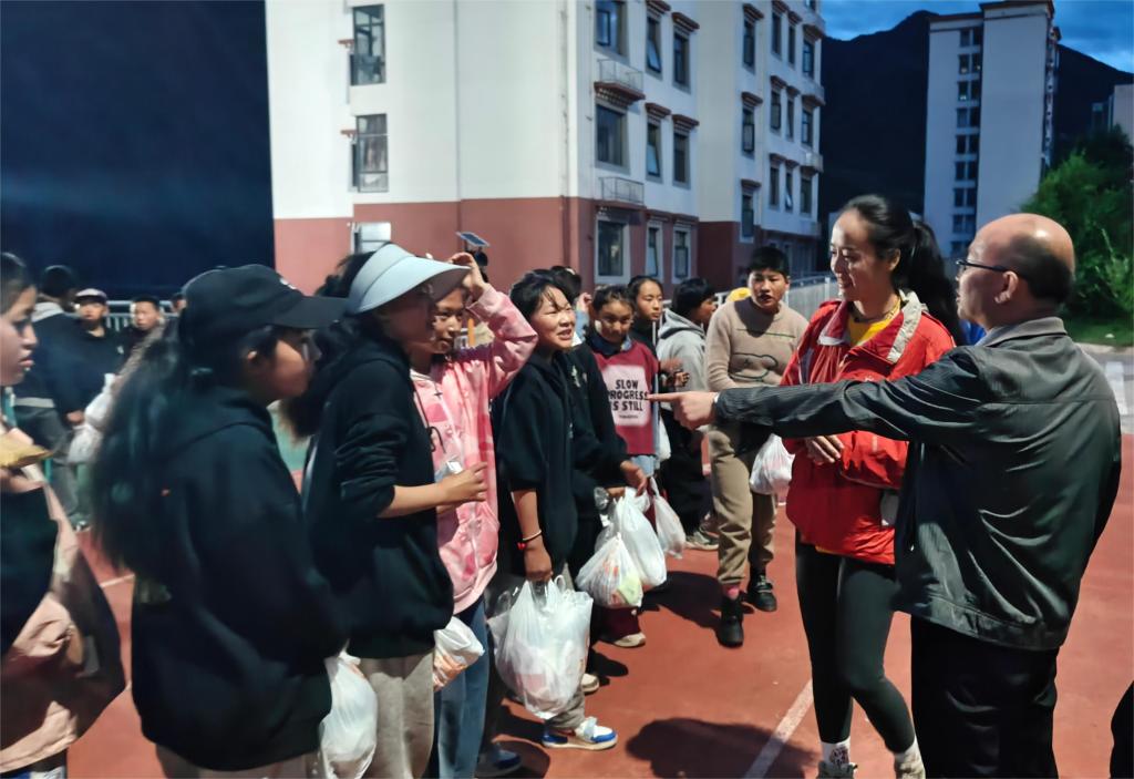 志愿者们经过2天风雨兼程,赶赴到700公里外的昌都市特殊教育学校,当志愿者们进入学校时,几十位孩子早已等在门口,教师扎西尼玛告诉志愿者们:孩子们知道你们来很开心,早早等候,当低智力学生能够叫出你的名字时,你们就是真正孩子们喜欢的人!志愿者们也马不停蹄的走进操场,带着孩子们开始游戏互动,为孩子们分发小吃等礼物,最后和值班老师一起组织学生回宿舍休息。
