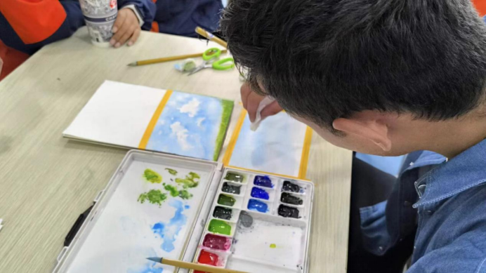 志愿者们走进听障班,为孩子们开设水彩绘画课程,提升色彩、形状、想象力及空间等艺术元素的认识与理解。无声地课堂里,志愿者与孩子们一笔一划的表达内心世界、跨越民族与沟通的障碍、形成多彩欢乐的课堂。