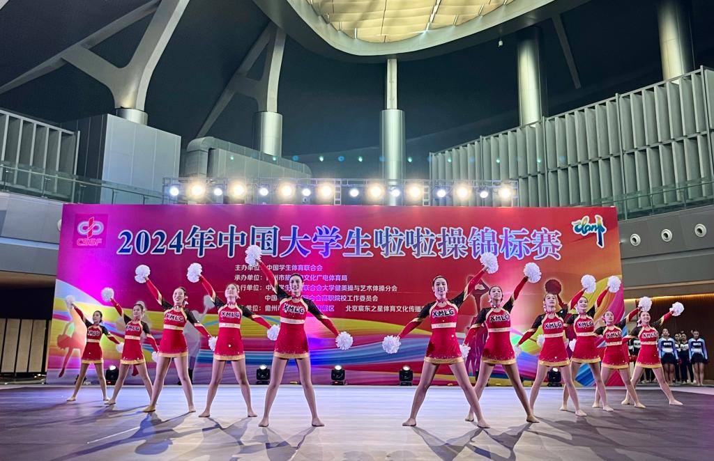 2024年11月14日-19日,由中国大学生体育协会主办的中国大学生啦啦操锦标赛在儋州市隆重开幕。来自北京体育大学、南京大学、吉林大学、广西大学、重庆大学、中山大学天津大学等全国各地的81所高校,千余名运动员齐聚海南,奏响青春与活力的乐章。在学校各部门的大力支持下,beat365通识教育学院体育教研室李鑫老师担任领队,田荣、程绘泽老师担任教练员带领12名运动员参加。