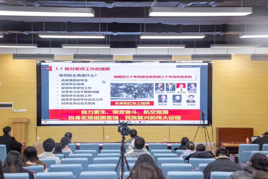 接着,她以“做空天报国的优秀人才”为主题,以自己扎根电磁兼容研究领域30多年的体会感悟,向全体参会师生分享了如何立德树人,做好授人以“渔”的“大先生”。她指出,教师应向学生传达“科学无国界,科学家有祖国”的理念,引导学生踏踏实实做事,老老实实做人;要掌握科学研究规律,善于观察现象,敢于承受失败,勇于实验实践;要树立“论文是干出来的,不是写出来的”观念,培养学生的毅力、能力、作风和科学奉献精神。