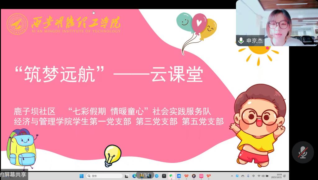 为深入学习宣传贯彻党的二十大精神,引导广大青年学生弘扬志愿服务精神,提升服务群众的本领。10月21日,经济与管理学院学生党支部通过腾讯会议开展“筑梦远航”云课堂主题党日活动,参加此次活动的有学生党支部书记、学生党员、发展对象、入党积极分子及汉中市镇巴县鹿子坝社区30余名6-10岁儿童参加了活动,活动由学生第五党支部书记邹代柳主持。