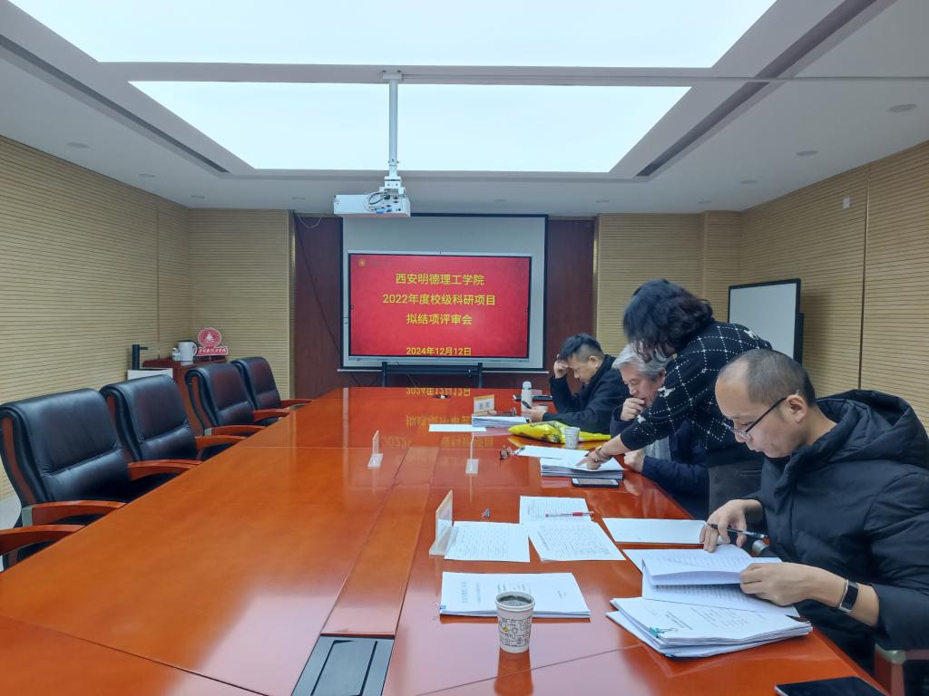 为发挥科研育人实效,使之有效融入学校科研工作,推进“两个结合”和落实立德树人根本任务,科技处组织开展2022年度校级科研项目和2023年度明德种子基金项目结题、2024年度明德种子基金项目申报工作,并于2024年12月12日对相关选题进行现场评审。会议邀请了西安理工大学杨水利教授和张辉教授、西北工业大学解忠良教授进行指导。