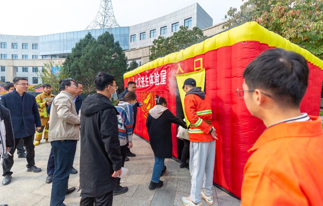 仪式结束后,智慧安全警务处组织师生代表进行消防常识宣讲、消防器材展示、灭火器材实操和火灾模拟逃生体验,现场发放消防安全宣传单。