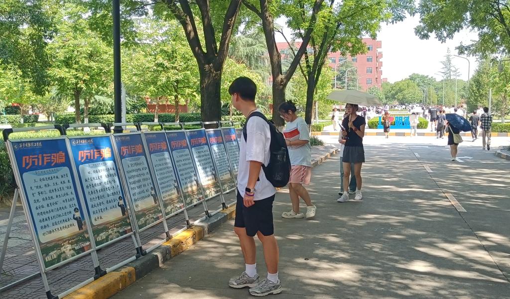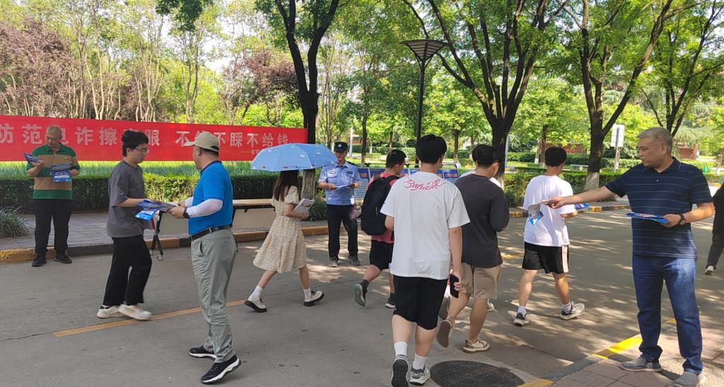 活动在学生公寓楼北侧进行,通过现场分发宣传彩页、展示宣传展板、现场讲解等活动形式展开,提醒广大师生不要被骗局所诱惑而受骗上当,遇到各种骗局一律遵循“不听、不信、不转账”的“三不”原则。