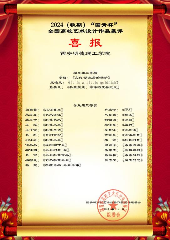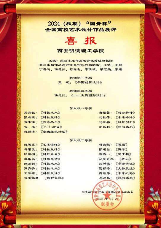 此次活动不仅为学生们提供了一个展示自我、挑战自我的平台,更为学校艺术教育的发展注入了新的活力。我们期待在“国青杯”的舞台上,与全国各高校的同仁们共同交流、共同进步,共同推动艺术设计教育的繁荣发展。