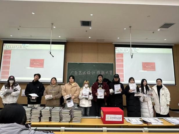 2025年1月2日颁奖典礼在庄重而热烈的氛围中举行。广告艺术专业的舒粉利老师发表了鼓舞人心的致辞,首先表示了对高职学院的大力支持表示衷心感谢,并对参赛学生们的卓越创造力给予了高度评价。随着颁奖进程的推进,一等奖、二等奖、三等奖及优秀奖的获奖名单逐一揭晓,获奖者们满怀喜悦地走上领奖台,从专业教师手中接过荣誉证书和丰厚奖品。这一时刻,是对他们个人才华和辛勤努力的最好肯定。