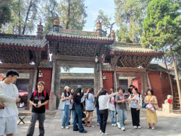 深入古城后,讲解员详细解读了三庙建筑中隐含的传统文化符号,文庙——这座始建于元代的儒学圣地,是韩城现存最完整的古建筑群之一。师生们漫步在五进院落中,从棂星门到大成殿,每一处建筑都彰显着严谨的礼制思想。特别引人注目的是大成殿前的元代石雕栏板,其精湛的"鲤鱼跃龙门"浮雕图案,成为学生们研究传统纹样与现代设计结合的绝佳案例。