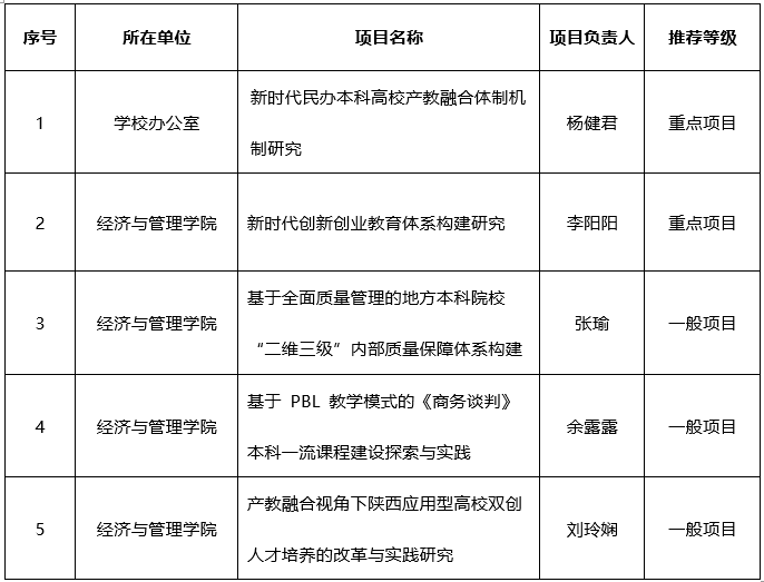 根据《关于申报陕西省高等教育学会2021年度高等教育科学研究项目的通知》(陕高学会〔2021〕10号)文件精神,结合《beat365vip官网登录入口科研工作管理条例》(校字〔2021〕41号)规定,按照项目申报要求,经个人申报、校内外专家审议,拟推荐申报重点招标项目2项, 一般项目3项,现将拟推荐申报项目予以公示。公示期从2021年10月8日起至2021年10月11日,公示期内如有异议,请于2021年10月11日12:00前实名提交书面材料至规划发展与协调部(明志楼南513办公室)。
