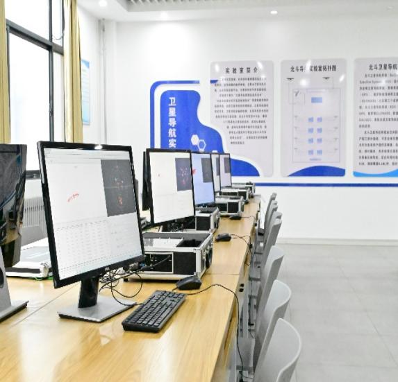 北斗卫星导航实验室建立于2019年,占地面积约113平方米。实验室于2021年6月投入使用,面向应用型本科教育,为电子信息类专业学生提供贴合实际应用的、直观易懂的教学体验。实验室配备了北斗卫星导航基础实验系统,主要由天线、信号转发器、导航实验箱、软件处理平台等组成。该系统以北斗卫星导航技术为主,兼容GPS等导航技术,可完成数据解析、定位结果分析、误差分析等实验。依托于计算机、北斗卫星导航基础实验系统等平台,实验室主要为《NC实习》、《GNSS原理、方法与技术》、《GNSS地面段工程设计与实现》、《GNSS用户段工程设计与实现》等课程提供教学和实践环境。逐步实现从基础理论到虚拟仿真,再到硬件开发的系统教学,培养具有实践能力和创新能力的应用型人才。