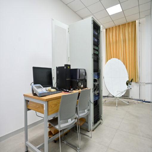 卫星通信实验室,该实验室于2022年6月投入使用,实验室配备了便携站卫星天分系统、固定站卫星天分系统等设备,整个系统由卫星终端设备,卫星网管系统,网络设备、话音设备以及中频环路和机柜组成,相关的测试和实操在可以中频环路环境中进行,实验室配备的设备均采用商用设备,有助于学生将来在卫星通信领域从事相关工作;同时配备有1.2米的便携式移动站卫星天线,室外架设有1.8米固定站卫星天线,两者结合,不仅支持卫星通信理论课程辅助教学,还可以进行卫星通信各子系统的实操训练,为卫星通信领域培养专业人才提供平台。