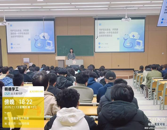 学院专题部署会后,各班级同步开展了食品安全教育主题班会,班会上通过以案说险、视频展示、政策解读等方式对非正规平台的校外外卖可能对学生饮食健康造成的威胁进行了分析,并对校外商家在原材料采买难溯源、加工制作卫生不达标、贮存配送环节有风险等食品加工重点环节进行了说明,同时倡导学生优先选择可监控、可溯源的校内合规餐饮,树立安全饮食意识。