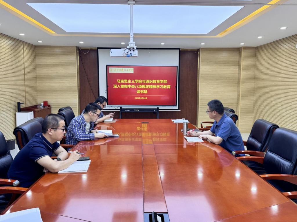 为深入学习贯彻习近平总书记关于加强党的作风建设的重要论述,全面落实中央八项规定及其实施细则精神,2025年4月21—4月24日,马克思主义学院与通识教育学院党委举办深入贯彻中央八项规定精神学习教育专题读书班。学院班子成员、党委委员和各党支部书记参加了此次学习活动,读书班由学院党委书记王君涛主持。
