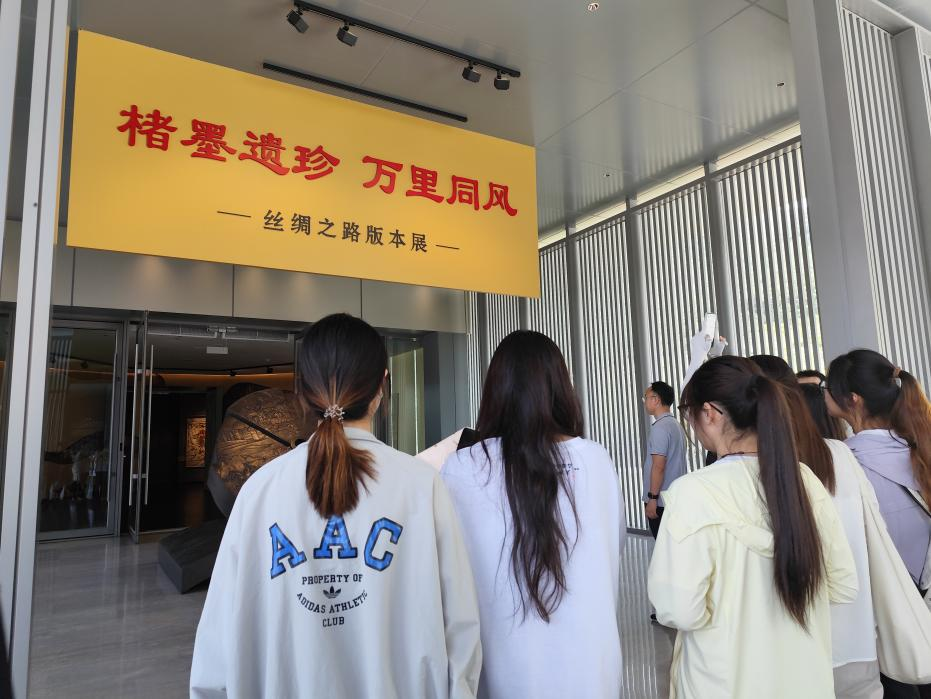 在丝绸之路版本展厅,通过讲解员的讲述,党员们驻足于古代贸易契约、敦煌遗书、外文典籍译本等珍贵展品前,感受丝路文明的辉煌。一张张泛黄的契约文书、一本本承载异域智慧的译著,生动再现了古代东西方商贸往来与文化交流的盛况。在中华文化经典版本馆,党员们从《共产党宣言》《延安归来》等革命文化版本中感受中国共产党的百年光辉历程,被革命先驱无畏的精神触动,被新时代的伟大成就鼓舞。