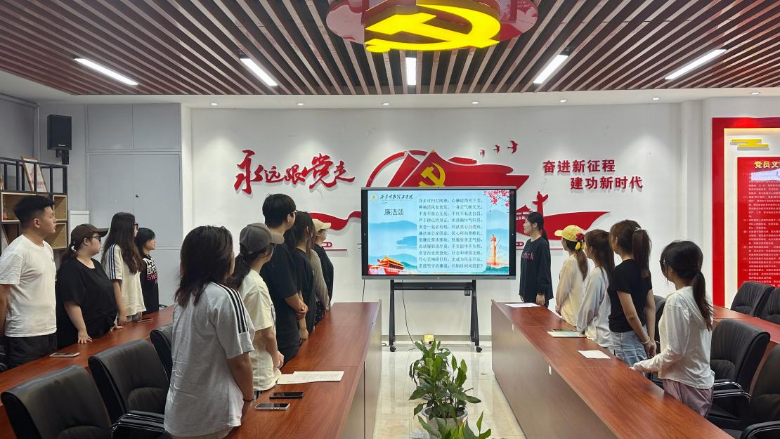 本次主题党日活动以读书分享会的形式开展,四位学生党员分享了阅读书籍的感悟。李明艳分享了《给年轻干部的21封信》,通过“信念如磐、慎微慎独、家风传承”三个维度,解读年轻干部成长路上的廉洁密码;柴娜分享了《把廉洁带回家》,通过江竹筠、方志敏等优秀共产党人的先进事迹,号召同学们对党忠诚,永葆初心;马雨辰分享了《“茅台局长”的沉沦路》,剖析了违纪违法典型案例,警示同学们“欲望如火,不遏则燎原”;徐剑飞分享了《中国共产党百年廉政风云》,带领大家重温党在不同历史时期反腐倡廉的措施和取得的成效。分享环节后,全体学生齐声朗诵诗歌《廉洁颂》,在铿锵坚定的誓言中,将活动推向高潮。党支部书记张朋在总结中谈到,青年党员当以清廉为人生底色,既要读有字之书悟原理,更要读无字之书践初心,让廉洁意识内化于心、外化于行。
