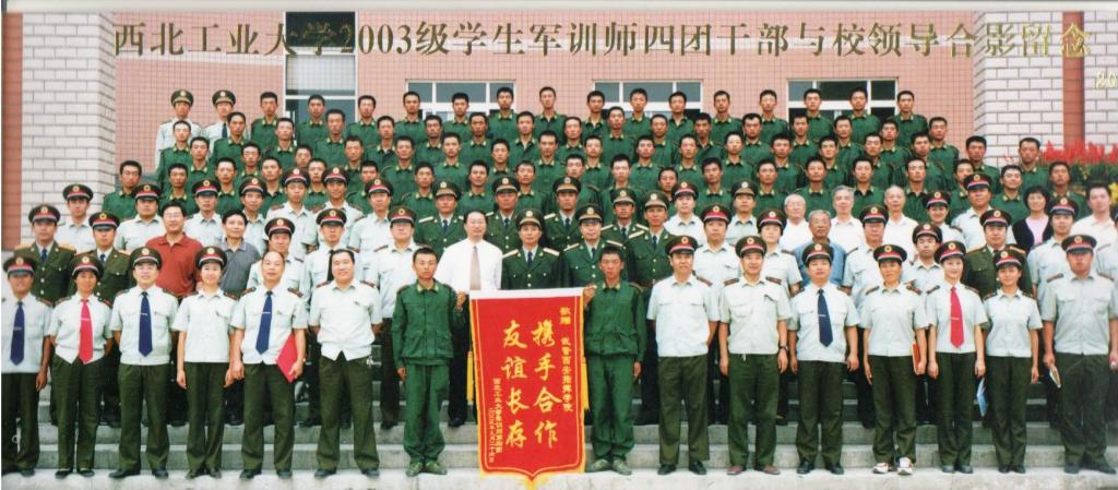 2003届学生军训师四团干部与校领导合影